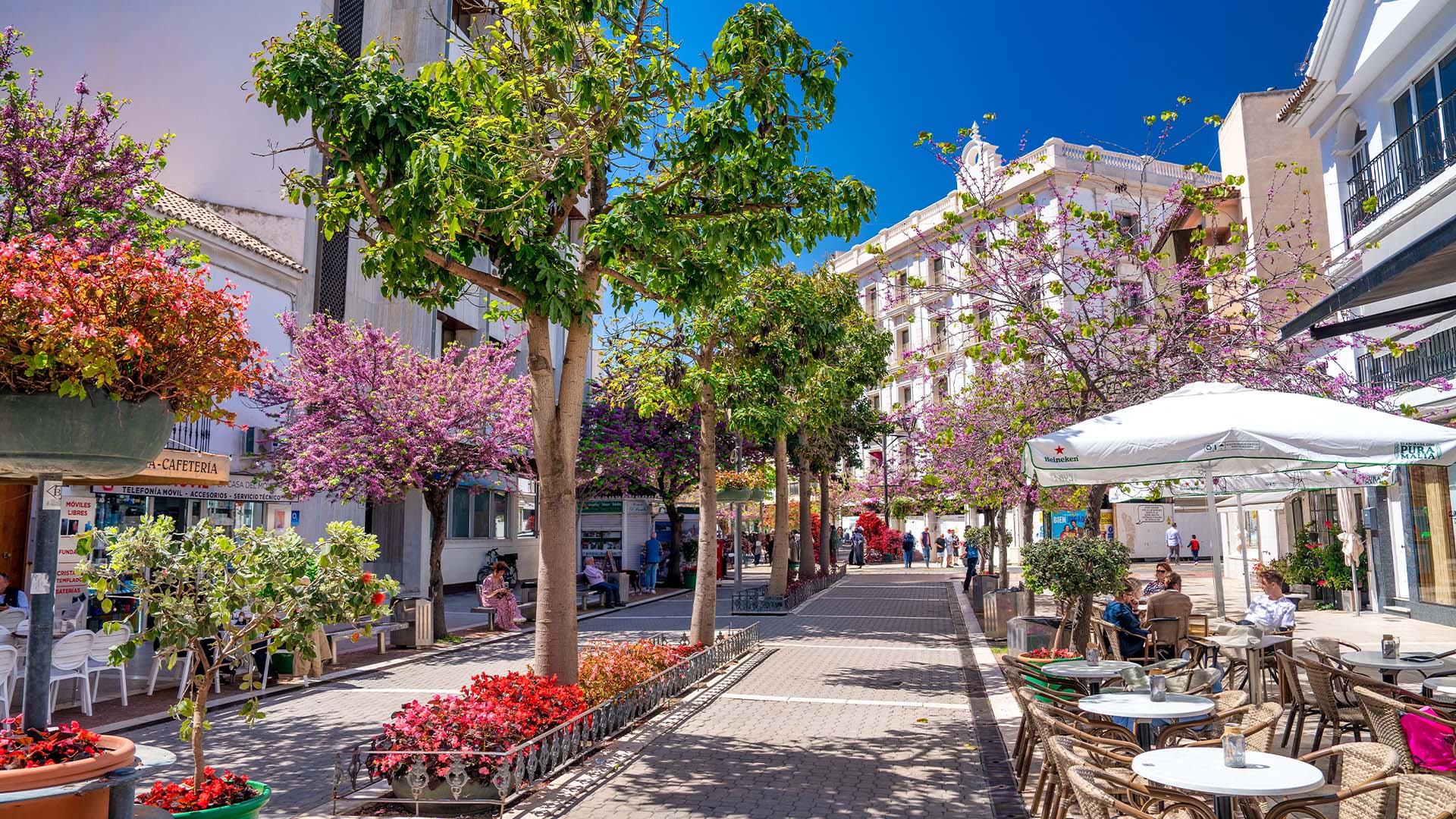 El casco antiguo de Estepona conserva toda la esencia andaluza con calles peatonales, plazas llenas de vida y fachadas cuidadas con flores. Un entorno con identidad propia donde la cultura, la historia y el carácter local siguen muy presentes.